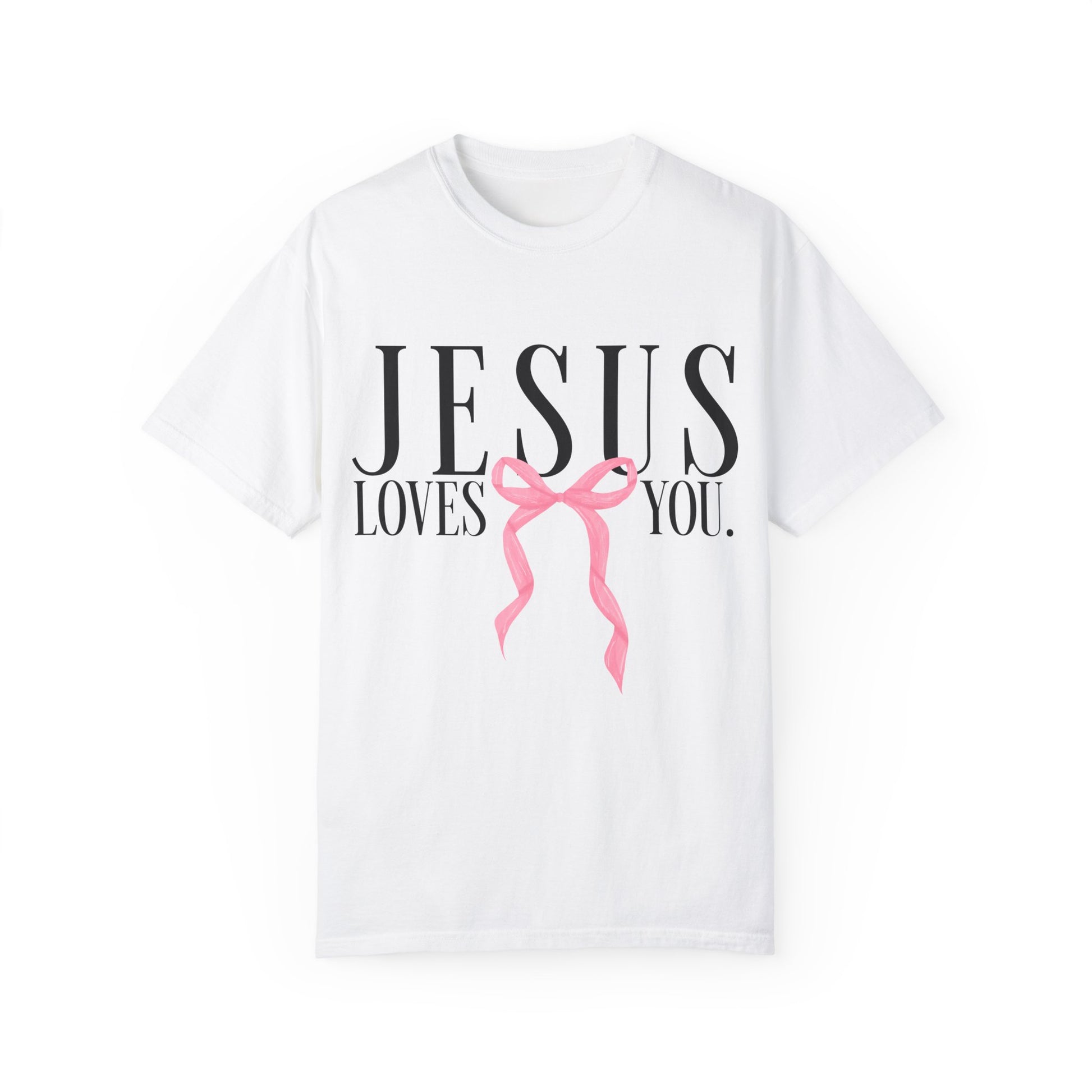 Jesus Loves You Pink Bow Comfort Colors T-shirt, Christian Shirt, Religious Tee, Faith Apparel, Inspirational Clothing, Comfort Colors Shirt
