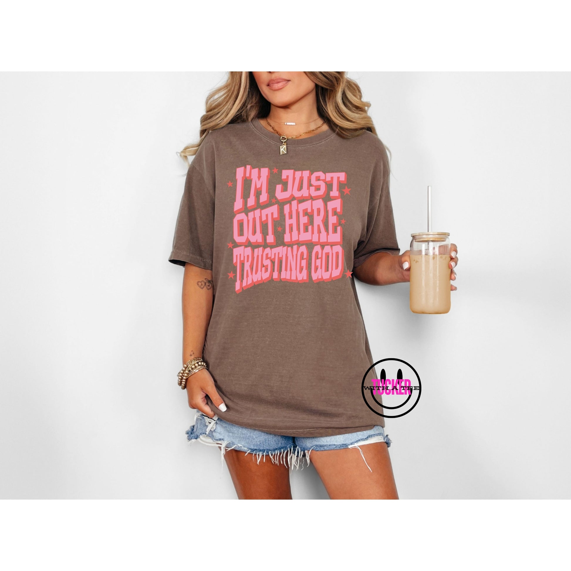 JUST OUT HERE TRUSTING GOD - COMFORT COLORS
