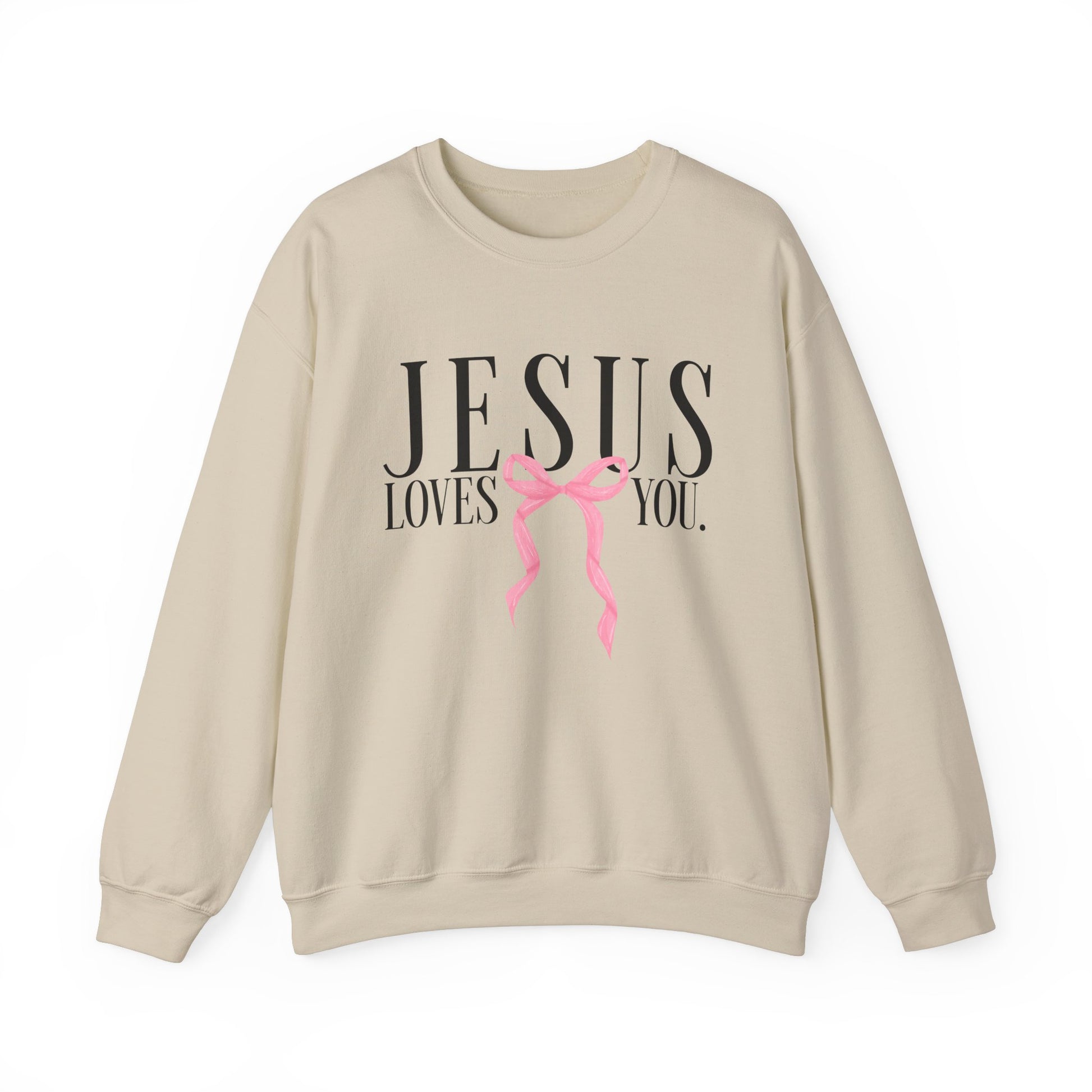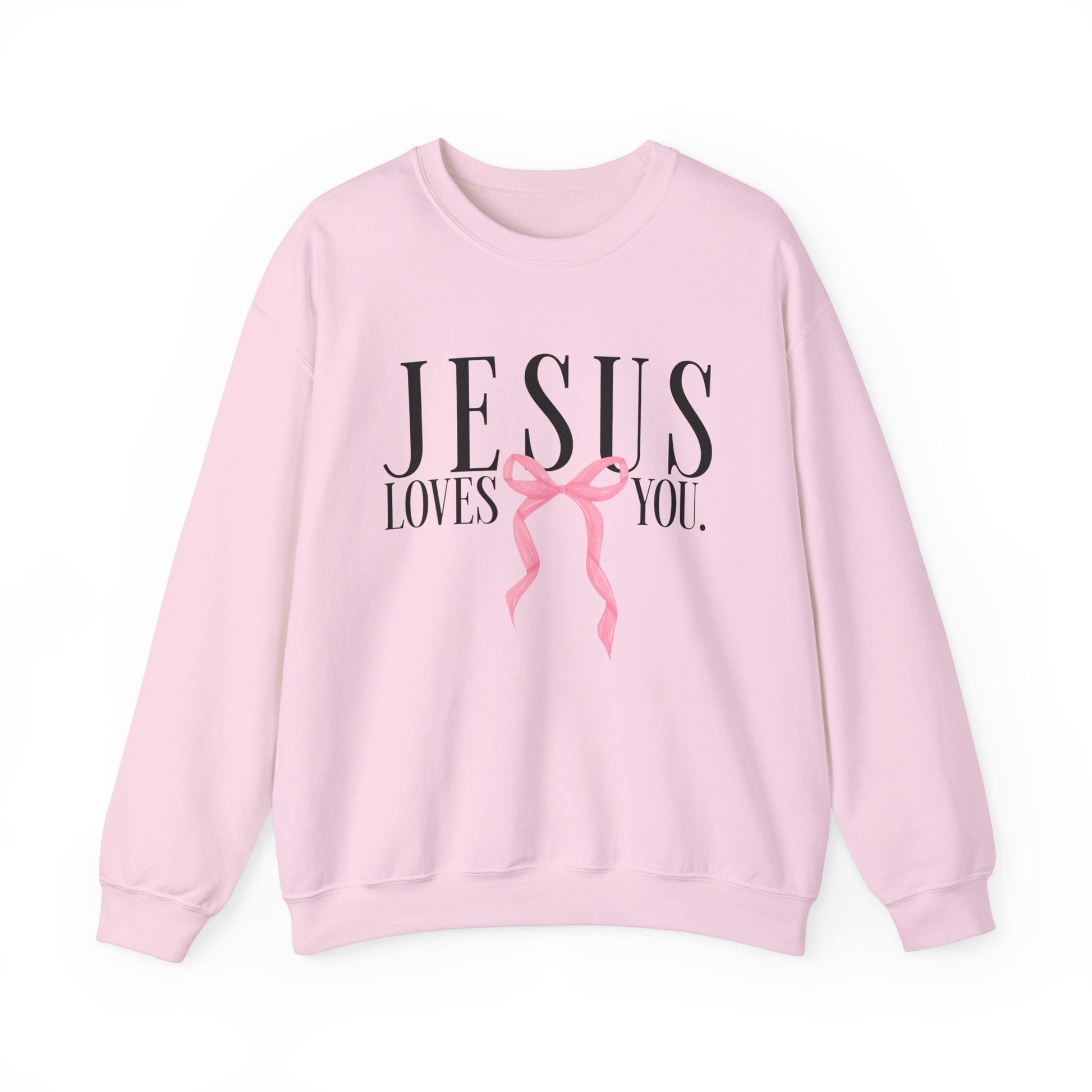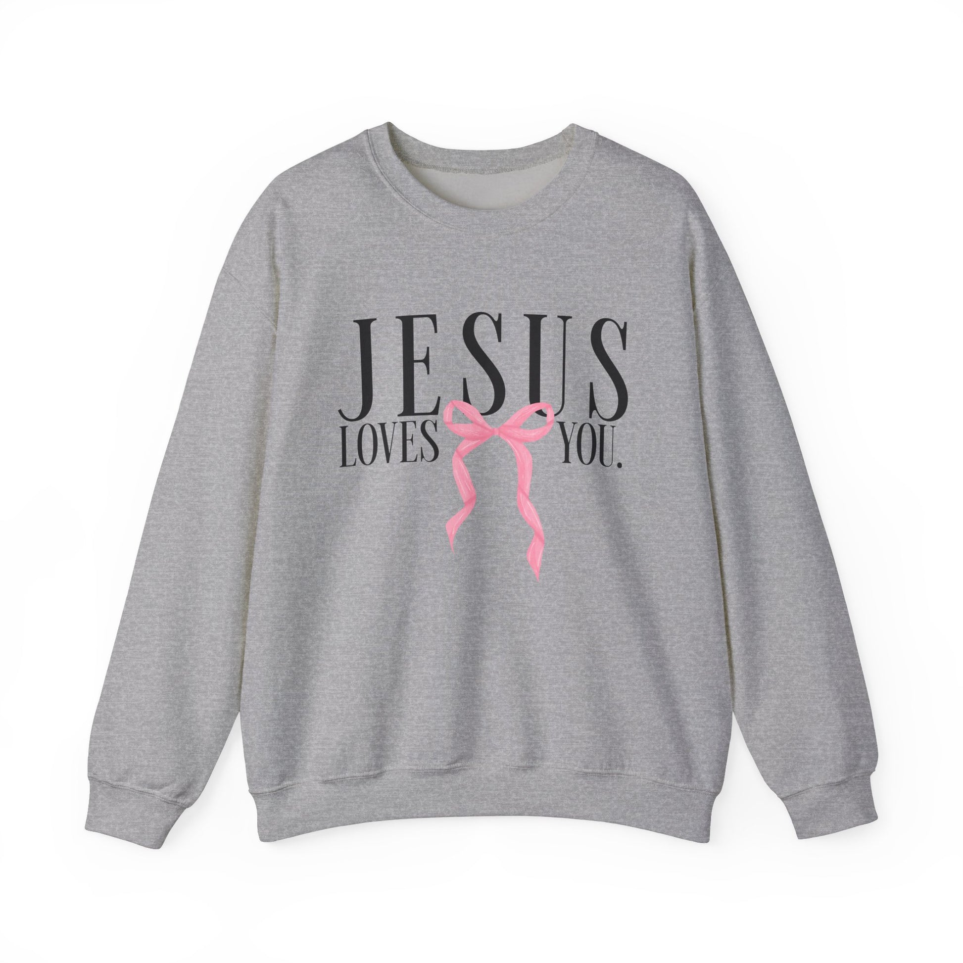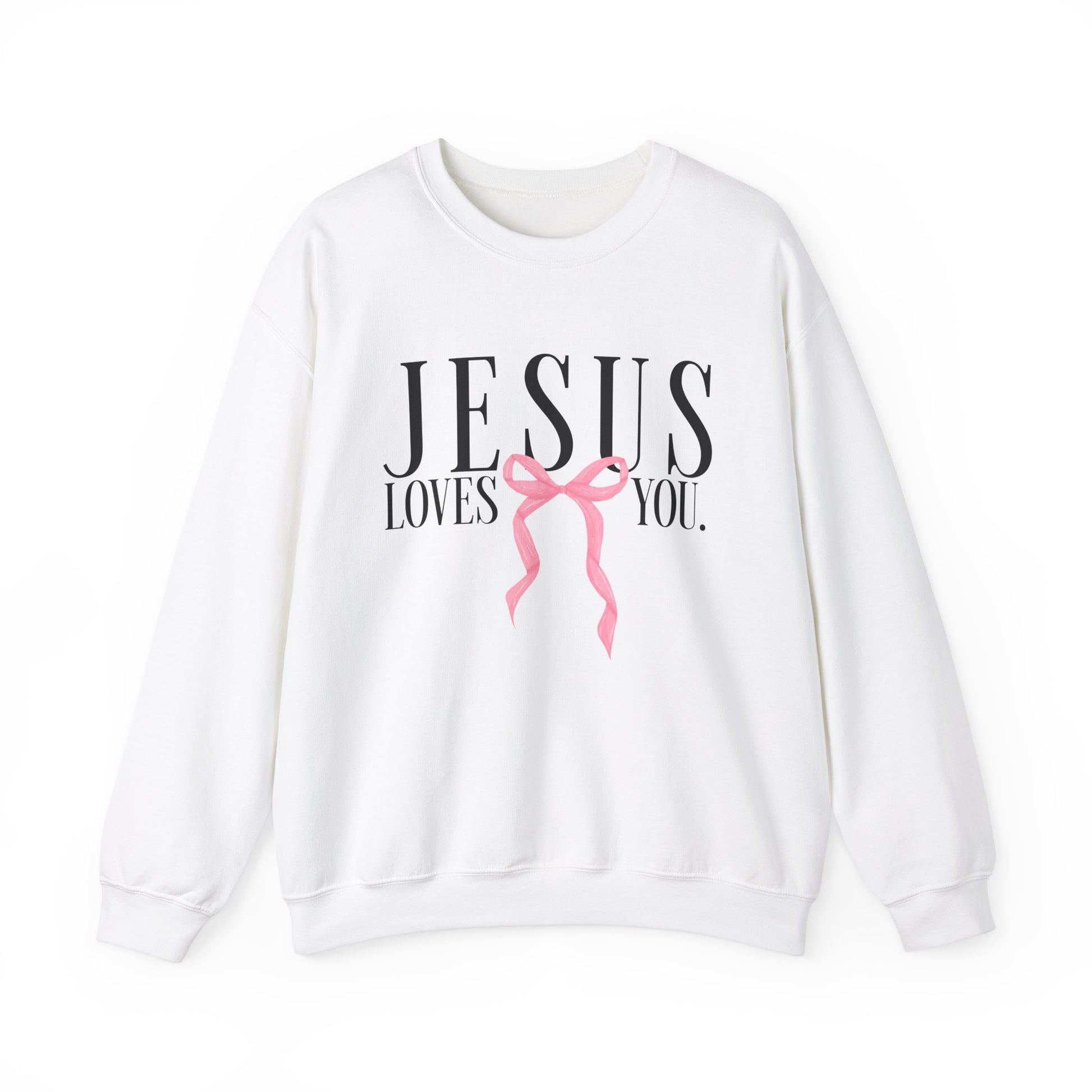 Preppy Jesus Loves You Crewneck Sweatshirt, Religious Christian Pink Bow Gift, Unisex Hoodie, Warm Cozy Pullover, Crewneck for Women